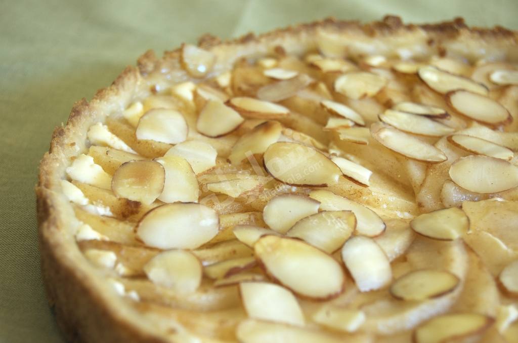 - ضعي مكعبات التوست باللوز و الكمثرى في طبق التقديم و قدمية.
