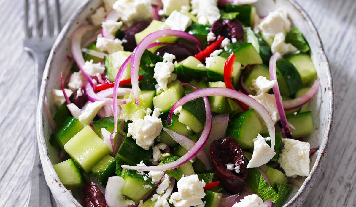 - 1 الجبن القريش والخيار والثوم والملح والفلفل فى سلطانية.