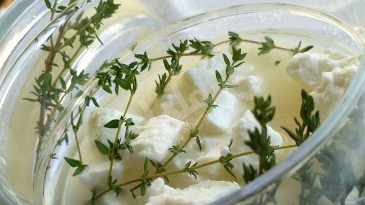 - صبي خليط العسل و الخل الأبيض فوق الجبن في البرطمان.