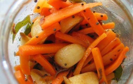 3. قومي بتقشير الثوم و إضافته إلى برطمان الجزر .