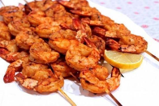 - وندهن بهم الجمبري ونضعه في اسياخ او في الصينيه وباقي التتبيله تضعيها في الصينيه.