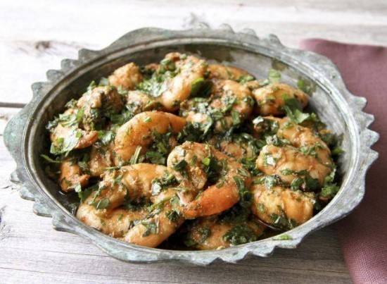 - نضع الروبيان في وطبق التقديم ونسكب عليه مزيج صلصة الكزبرة المتبقي و يقدم.