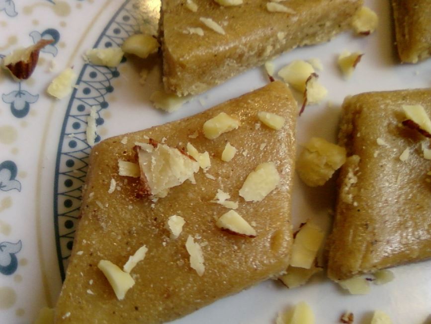 - نشكل العجينة إما بقالب المعمول أو نمدها بالصينية ونقطعها ونزينها بالجوز وبهذه الطريقة يكون الحلى جاهزاً للتقديم .
