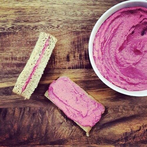 - يضاف الشمندر والحمص الحب والثوم والليمون والملح والقليل من الكمون إلى الخلاط ويطحن.