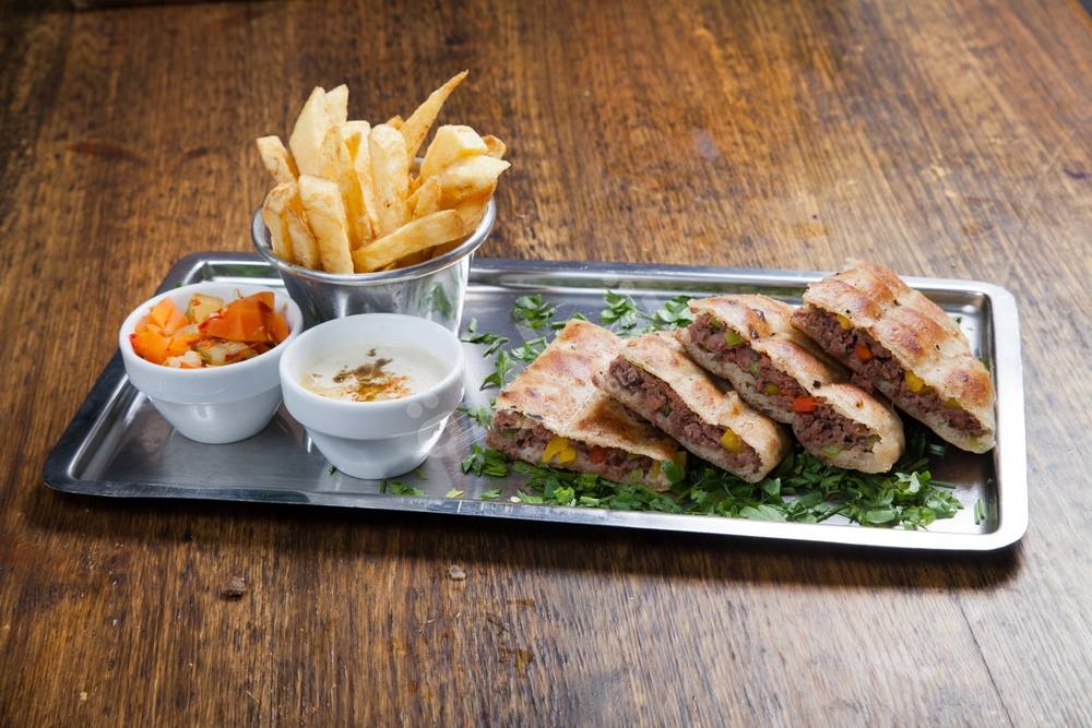 - قدمي الحواوشي الحار مع السلطة و الطحينة.