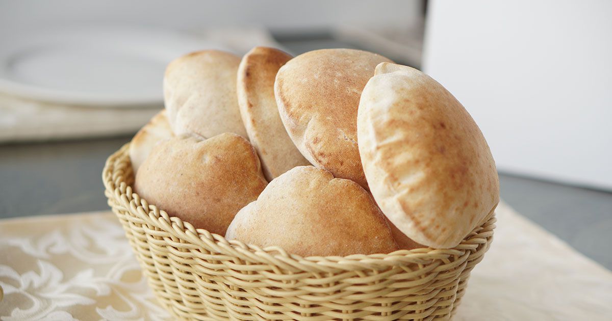 6- سخّني مقلاة كبيرة غير لاصقة على نار متوسطة. ضعي قطعة من الخبز في المقلاة وقلّبيها عدة مرات مع الضغط قليلاً حتى ينتفخ الخبز. كرّري العملية حتى انتهاء الكمية.