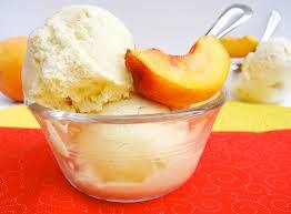 – ثم ضعى الخوخ فى كأس التقديم وعليه ايس كريم فانيليا ثم صوص الخوخ ويقدم