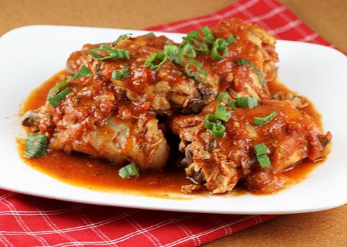 2. يضاف معجون الطماطم والماء ويترك الدجاج ربع ساعة حتى ينضج.