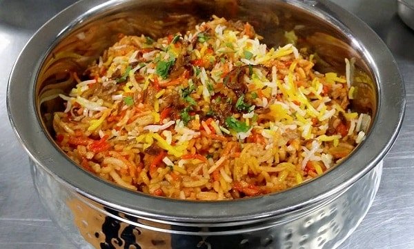 - – ونغطى القدر بغطاء محكم ويطهى الأرز على نار هادئة لمدة 12 دقيقة أو حتى ينضج، ونضعه في طبق التقديم ويزين بحبات الكاجو، ويقدم ساخنا مع سلطة زبادي بالنعناع.