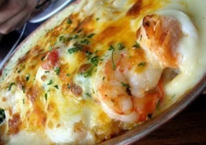 - اضيفي الجبنة المبروشة الى الصلصة ثم اسكبي الصلصة فوق الروبيان.