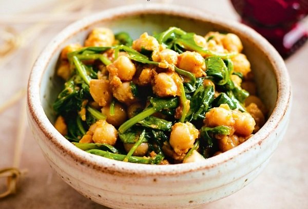 السبانخ المجمدة بالحمص ، يجمع هذا الطبق اللذيذ والصحي كلاً من السبانخ الغني بالحديد والحمص الذي يحتوي على البروتين مع نكهات رائعة يضفيها الثوم والبابريكا والكمون على طبق السبانخ بالحمص السهل والسريع والذي يمكن تقديمه خلال 30 دقيقة فقط .