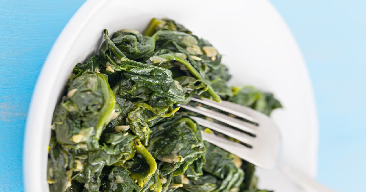 7- اسكبي السبانخ في طبق التقديم.