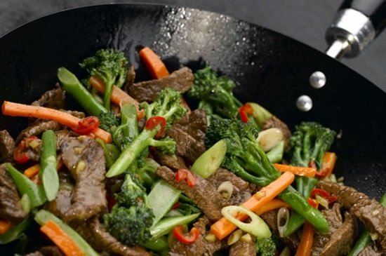 2. حركي اللحمة جيداً ومن ثم ازيليها من المقلاة وضعيها جانباً،ومن ثم أضيفي للمقلاة : [أزهار القرنبيط، وشرائح الفليفلة الحمراء والحزر والبصل الأخضر ومهروس الثوم ]