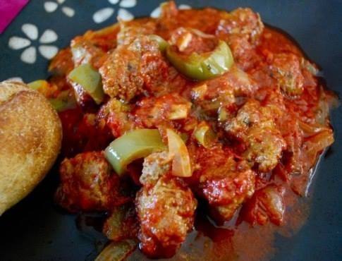 - ضعي الفلفل ثم الطماطم ويترك قليلا على النار ثم يضافوا للسجق مع الكاتشب وقليل من المياه ويقلبوا معا ويتركوا ربع ساعة علي نار هادئة ، ثم يقدم .