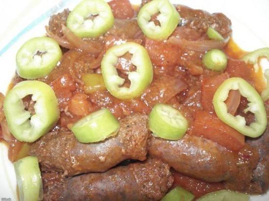 - ونحضر ملعقه كبيره صلصه ونذوبها فى كوب ماء ونضعها على السجق ونضع الملح والفلفل ونتركهم حتى الغليان، ثم يقدم فى طبق التقديم ونضع على الوقه الفلفل الحار .