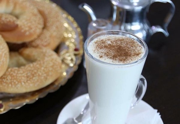 3. – يصب السحلب في الأكواب ويزين بمسحوق القرفة والفستق