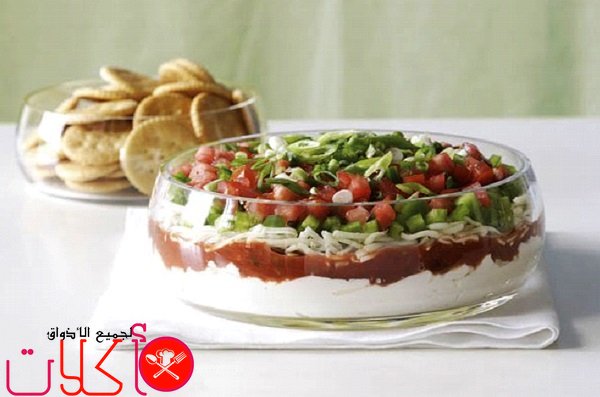 - نضع خليط الخضار كطبقة ثالثة ليصبح جاهزاً للتقديم .