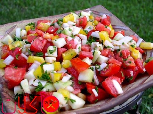 سلطة صحية مكونة من خضراوات متنوعة تتميز بطعمها الحار وايضا بطعم دبس الرمان