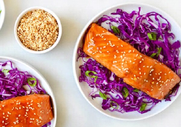 السلمون بالعسل ، يجمع طبق السلمون بصلصة العسل والثوم بين النكهات الحلوة والمالحة الشهية وذلك لغناه بالثوم الطازج والزنجبيل والعسل وصلصة الصويا والمذاق الرائع الذي يضيفه عصير الأناناس إلى هذه الوصفة .