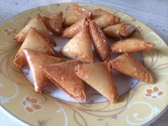 - اقلي السمبوسة في زيت غزير، ثم غطسيها بعد القلي مباشرة في العسل الدافئ الممزوج بماء الورد.