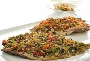 - نحضر صاج و نبطنه بـ ورق الفويل ونضع السمك و عليه الحشو موزع بطريقة جيدة و ندخله الفرن لمدة 45 دقيقة وقبل اخراجه نصب الزيت فوق الوجه ويقدم مع الارز .