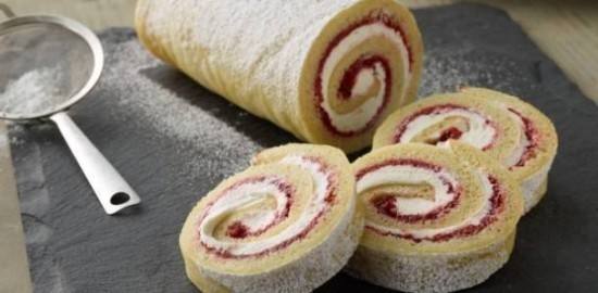 7. تخرج من الفرن ثم تغطي بفوطة مطبخ حتى تبرد ثم تدهن بالحشوة مثل المربى او الموس او الكريم ثم تلف.