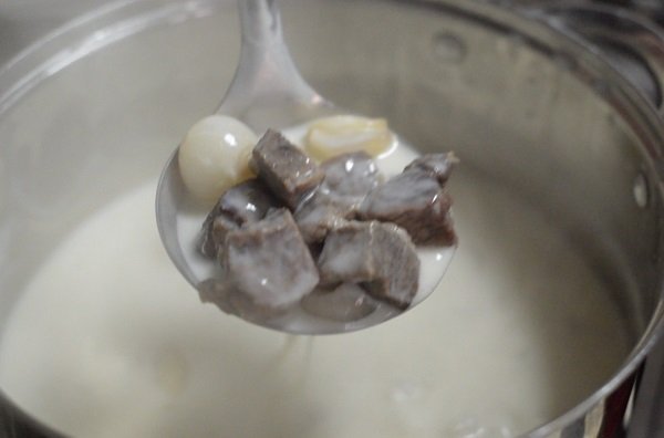- نضع اللبن في قدر على النار و نبداً بالتحريك دون توقف حتى يبدأ اللبن بالغليان .