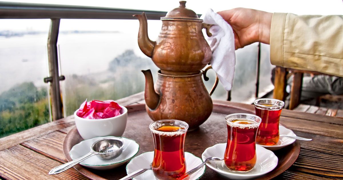 3- عند غليان الماء في الإبريق السفلي اسكبيها فوق الشاي في الإبريق الصغير.