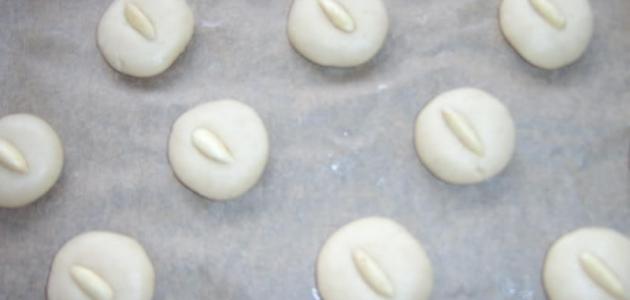 - بعد ذلك نقوم بتقطيع عجينة الشكر لمة إلى أجزاء، ونقوم بتشكيل أجزاء العجينة لدوائر صغيرة ونقوم بتزيين قطع الغريبة بالفستق الحلبي والصنوبر واللوز.