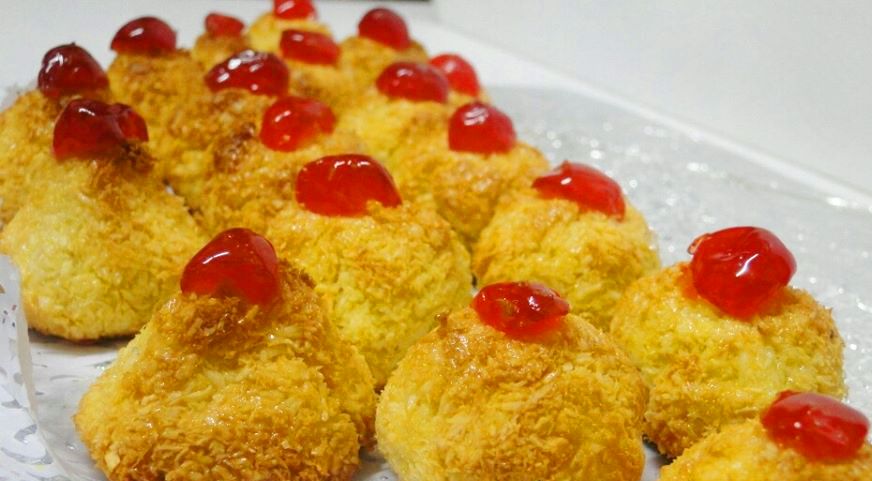 - نضع في وعاء كلاً من جوز الهند والسكر والحليب البودرة والفانيليا .