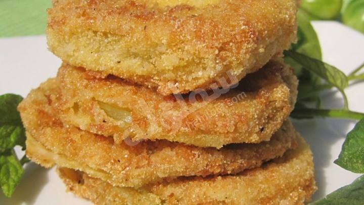 6. ضعي شرائح الطماطم في مزيج اللبن و البيض ثم ضعيها في الخبز المحمص المفتت حتى يغطيها بالكامل جيدا.