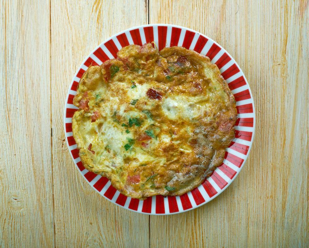 - يوضع خليط البيض في المقلاة، ويترك حتى يبدأ في النضج.