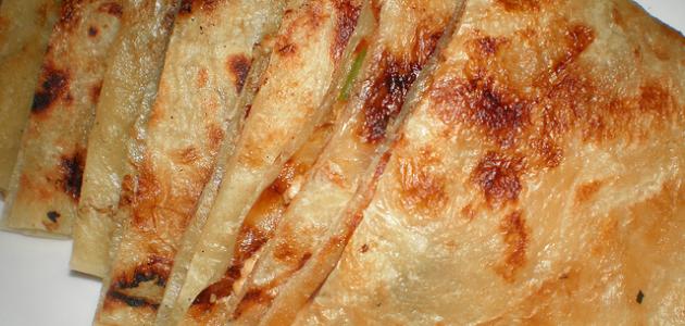 - وقت خبز الفطيره ادهني الطاولة بالزيت وافردي قطعةً من العجينة بحيث تكون رقيقة جداً، ومطي الحواف وضعيها في صينية الخبز ورشّيها بالسمن.