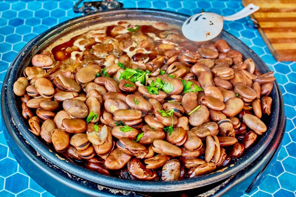 - يضاف الفول ويقلب جيداً على نارهادئة لمدة 10 دقائق.