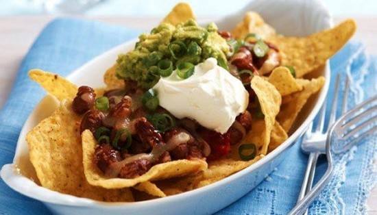 - بطني أربعة أطباق بالقليل من رقائق الشييبسي، وانثري القليل من جبن الشيدر، اغرفي مزيج الفول بالتساوي بين الأطباق مع إضافة طبقة أخري من الشيبسي، ثم ضعي الكمية المتبقية من مزيج الفول، وانثري الجبن من اعلي.