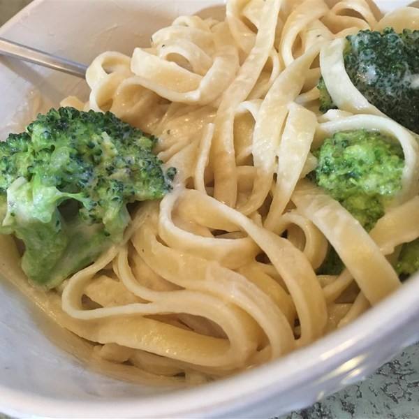 - ضعي البروكلي و الزبدة و صوص الألفريدو و الزبدة و الفلفل الأسود على المكرونة و قلبي المزيج برفق.