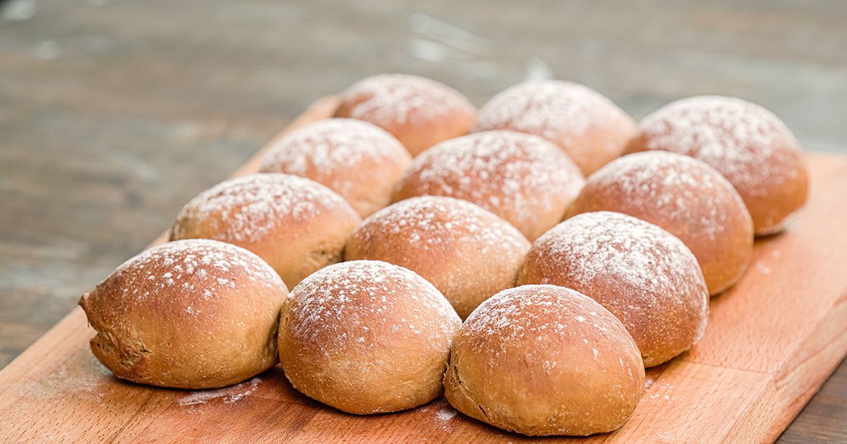 1- في وعاء، ضعي الدقيق، السمن والخميرة. قلبي المكونات حتى تمتزج. 2- أضيفي السكر والملح على اللبن الرايب وحركي حتى يذوب. 3- زيدي خليط اللبن تدريجيا واعجني المكونات حتى تحصلي على عجينة متماسكة. 4- غطي العجينة وأتركيها مدة ساعة لتختمر. يمكنك ايضاً اعتماد طريقة تخمير العجينة بسرعة. 5- شكلي العجينة على شكل أقراص متوسطة الحجم وضعيها في صينية فرن بشكل متباعد. 6- أدخلي الصينية الى فرن محمى على حرارة 200 درجة مئوية حتى تنضج وتتحمر.