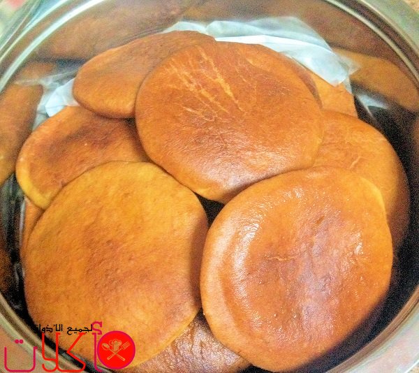 ٦-تفرد كل كورة الى شكل قرص مثل قرص رغيف الخبز وتترك لترتاح لمدة ٥ دقايق.