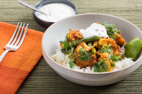 القرنبيط بالطريقة الهندية طبق هندي خفيف لإعداد صحن متكامل من القرنبيط والدجاج والأرز والصلصة معاً، و القرنبيط بالطريقة الهندية غنية بالتوابل والزبيب والزنجبيل، وتقدم إلى جانب اللبن الزبادي وقطع الليمون الطازج