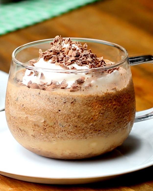 - ضعي القهوة في كوب التقديم ثم ضعي عليه الكريمة المخفوقة و الشيكولاتة المذابة و يقدم.