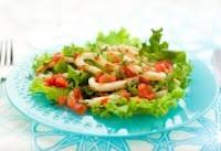 - تقطع كل قطعة من الكالمارى إلى نصفين ثم يتبل بالملح والكمون وعصير الليمون، ثم نقطع الكوسة والجزر.