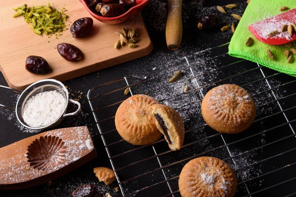- قومي بحشو الكحك بالعجوة و الفستق ثم اغلقيها و ضعيها في الصاج.