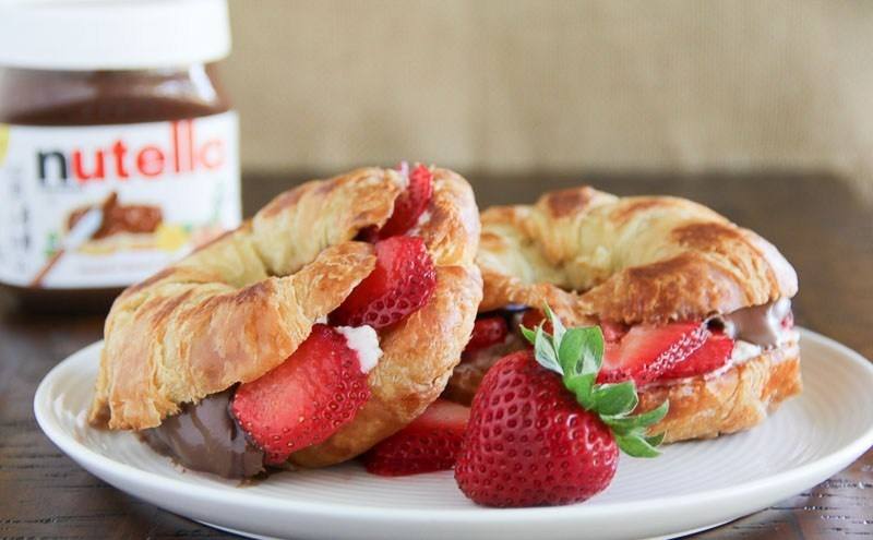 - ضعي شرائح الفراولة على النوتيلا ثم اغلقي الكرواسون.
