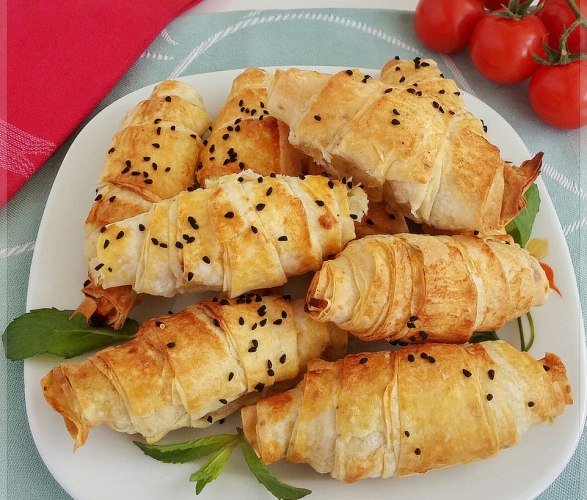 الكروسان بالجلاش وهي من اشهى انواع المقبلات فطعمها المقرمش الهش يأثرك غير ان شكلها الذهبي الرائع يفتح الشهية ولا تحتاج غير دقائق لتحضيرها فهو طبق مثالي لوجبة السحور في شهر رمضان الكريم واليكم طريقة التحضير