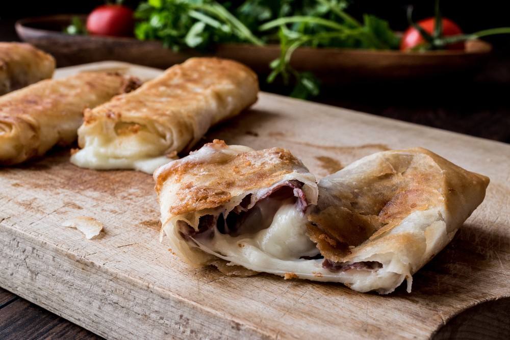 - قومي بفرد الجبن الفيتا على شرائح الكريب برفق.