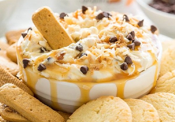 الكريمة بجوز الهند هي من الوصفات التي يحبها الأطفال كثيراً فهي تضيف مذاقاً رائعاً لجميع أنواع البسكويت حيث تحتوي على نكهة الجبنة الكريمية بالإضافة للكراميل وقطع الشوكولاته الشهية .