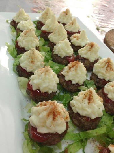 - ونضعها بقمع التزيين ونشكل فوق الكفته ونرشها بسماق او بابريكا او فلفل او بقدونس.