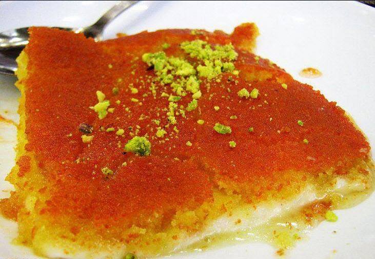 4. ثم نضع الجبن على الوجه وندخلها الفرن حتى تتحمر الأطراف ثم تقلب ونضع عليها الشربات .
