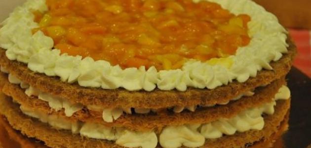 - تزيين الكنافة بكريمة الحلويات، ووضع عليها شرائح المانجو والخوخ، ثم تقديمها.