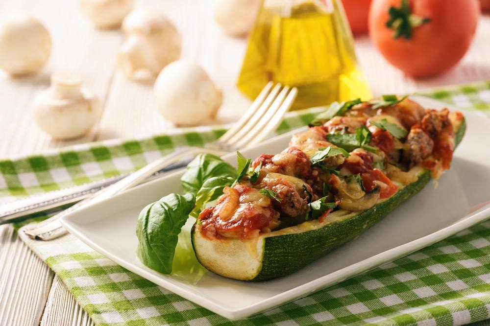 - اقسمي الكوسة نصفين طوليا ثم ازيلي البذر الداخلي لها ثم ضعيها في صينية قابلة للإستخدام في الفرن.